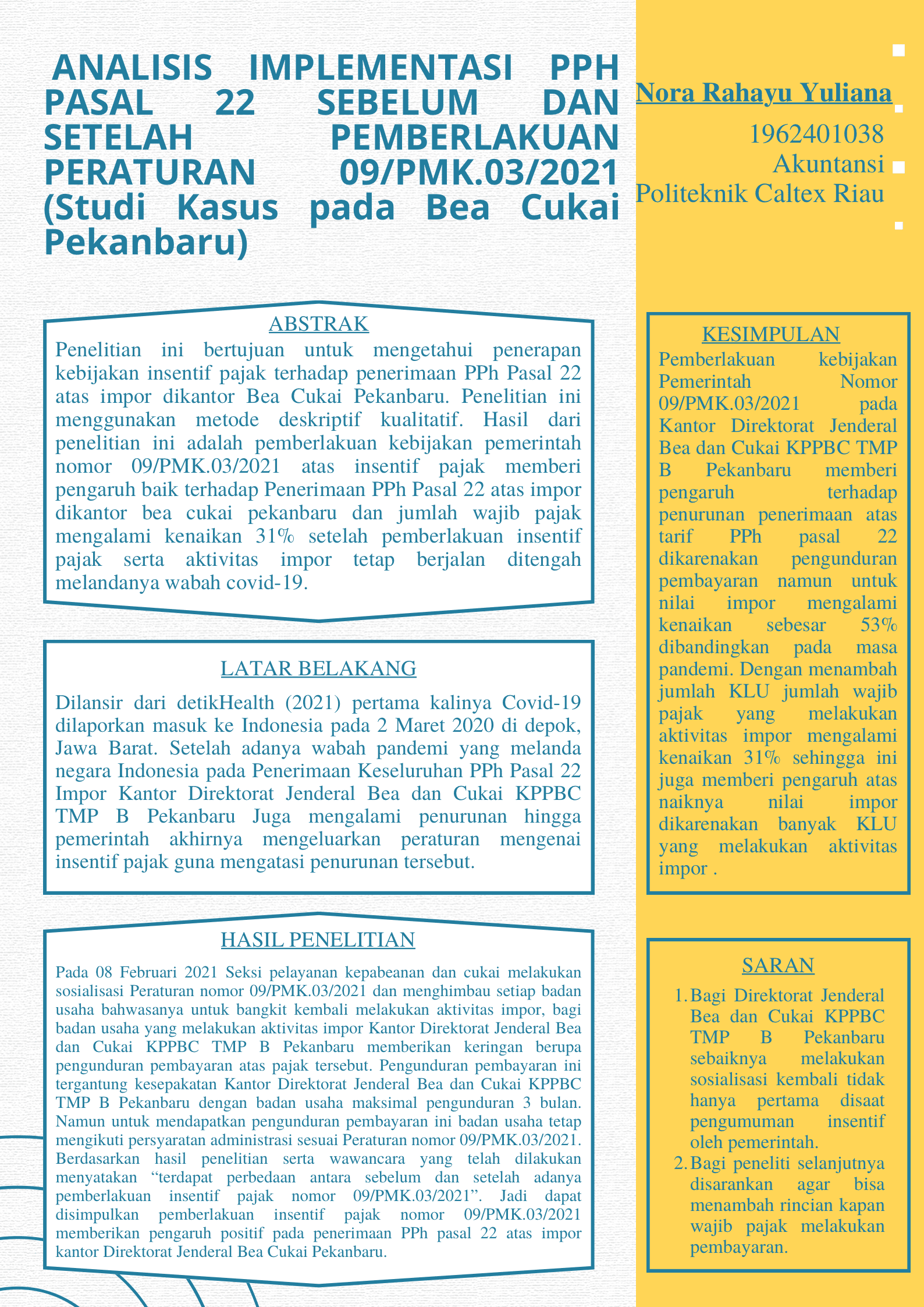 Analisis Implementasi PPh Pasal 22 sebelum dan setelah pemberlakuan 09/PMK.03/2021 (Studi Kasus pada Bea Cukai Pekanbaru)