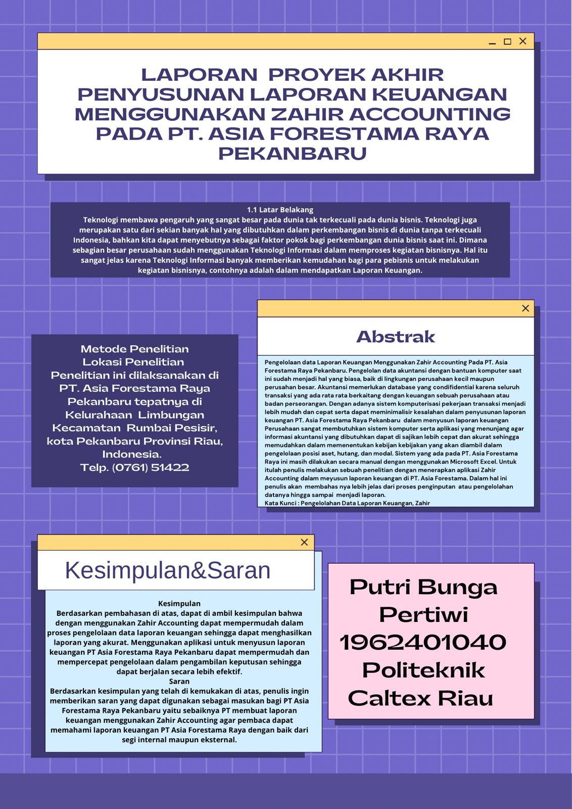 Penyusunan Laporan Keuangan Menggunakan Zahir Accounting Pada Pt. Asia Forestama Raya Pekanbaru