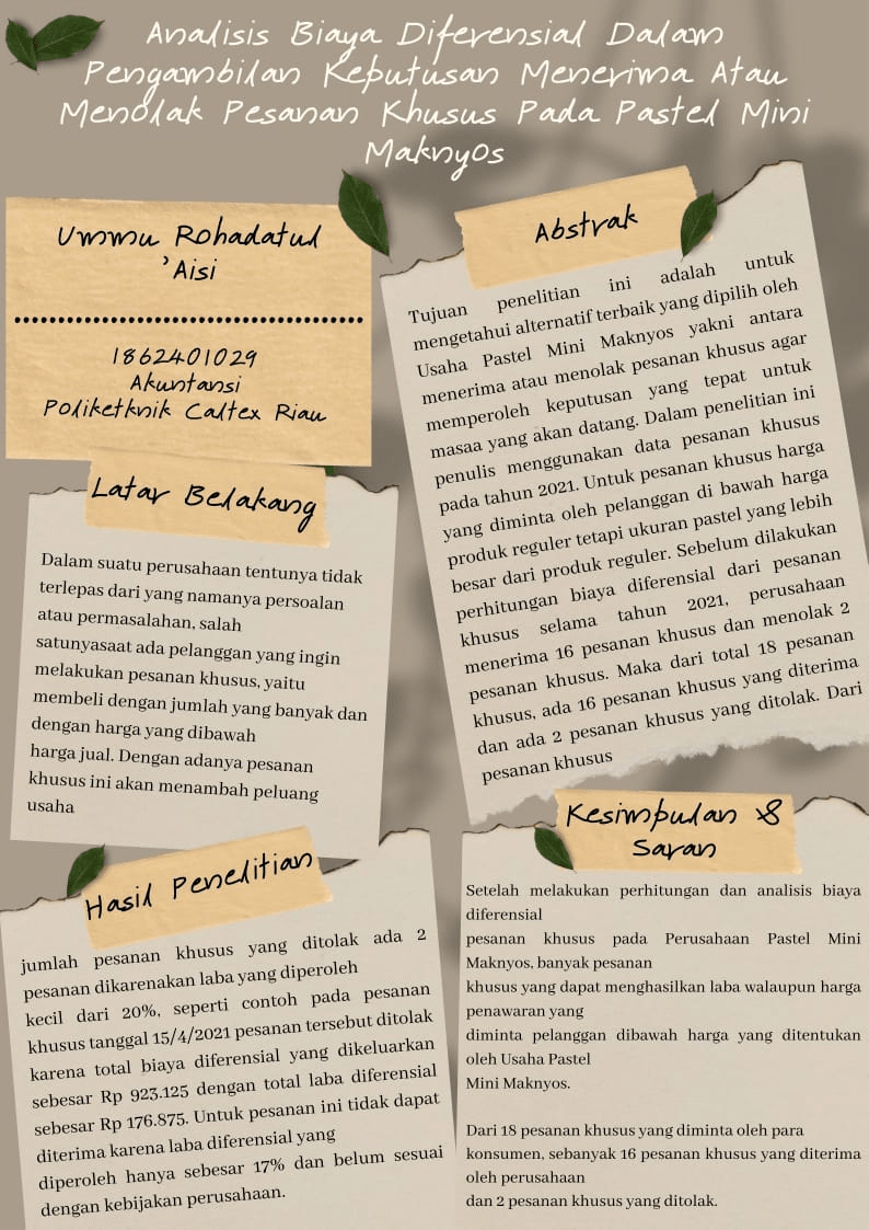 Analisis Biaya Diferensial Dalam Pengambilan Keputusan Menerima Atau Menolak Pesanan Khusus Pada Pastel Mini Maknyos